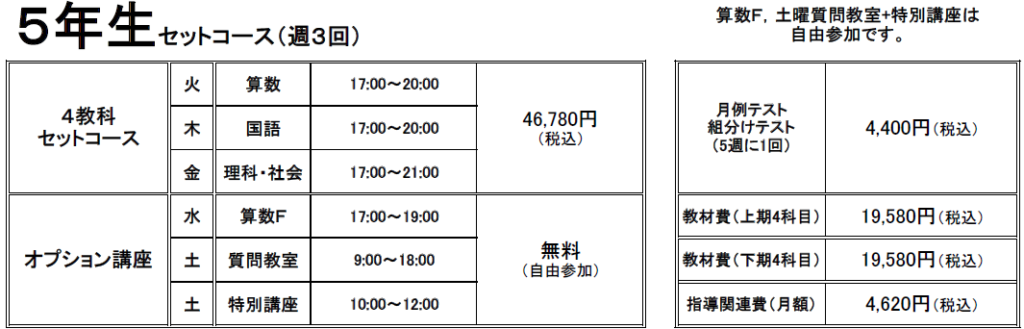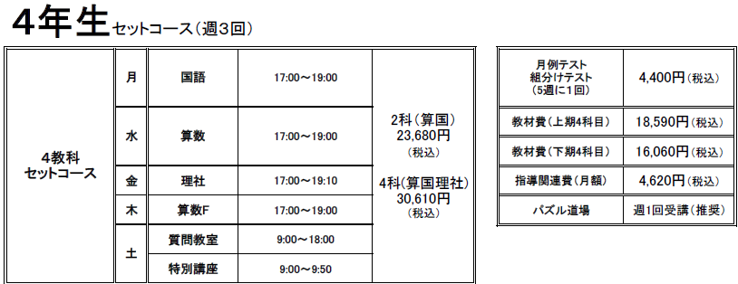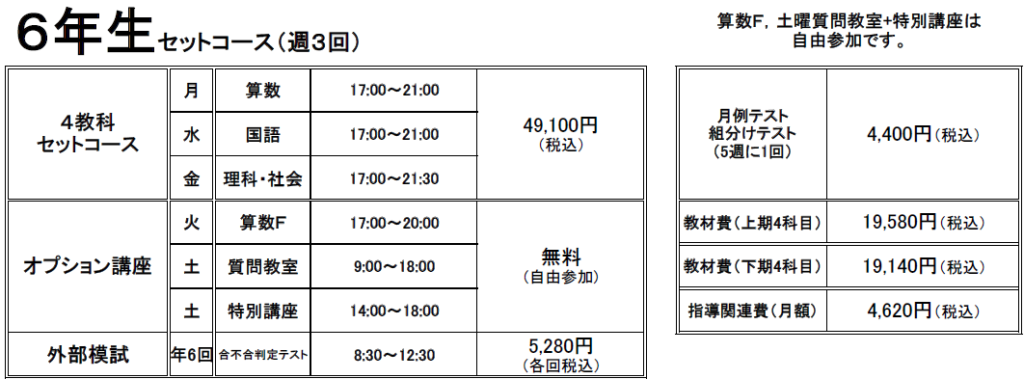 - 本科授業(4科・2科)時間内に復習テスト(各週)を行います。復習テスト代は、本科授業料に含まれます。